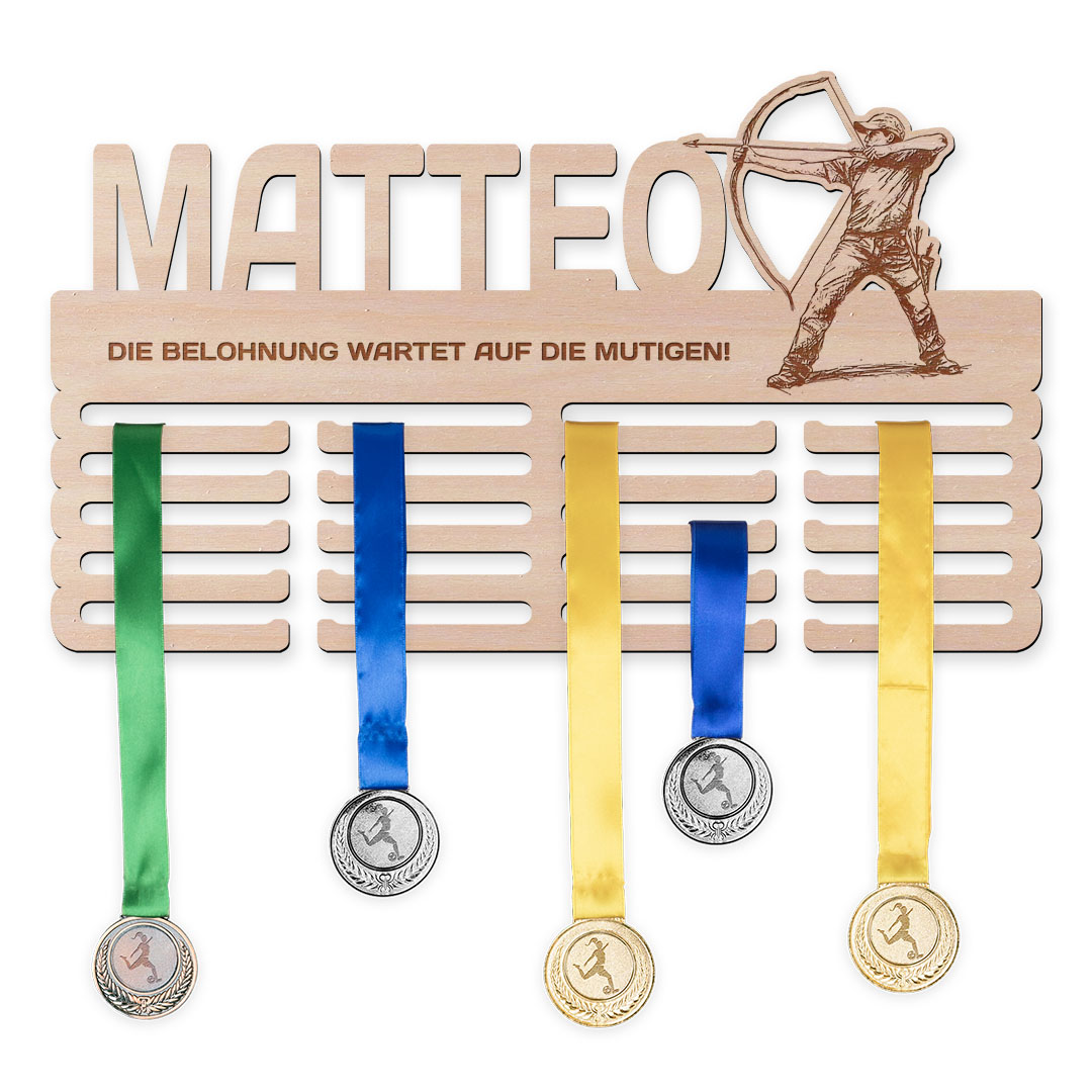 Wir fertigen Medaillenhalter maßgeschneidert nach Ihren Wünschen. Geben Sie einfach den Namen, einen motivierenden Spruch und eine sportliche Silhouette an, und wir kümmern uns um den Rest.